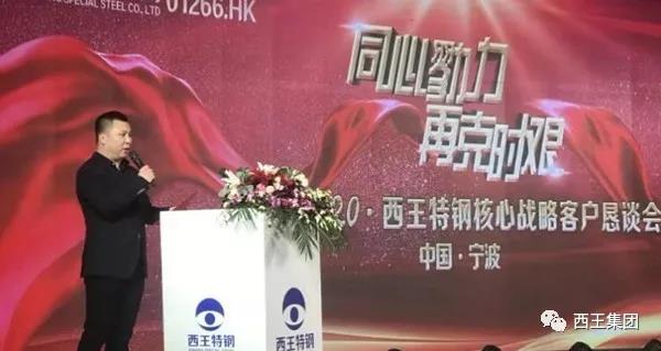 西王特鋼常務副總經理胡哲作2019年度工作總結和2020年度工作展望,從市場布局、行情分析、價格走勢、品牌推廣等方面進行了總結;西王特鋼戰略合作客戶代表分別發言,對西王特鋼一直以來對大家的關心和幫助表達了感謝,表示將繼續與西王同心協力,再鑄輝煌。